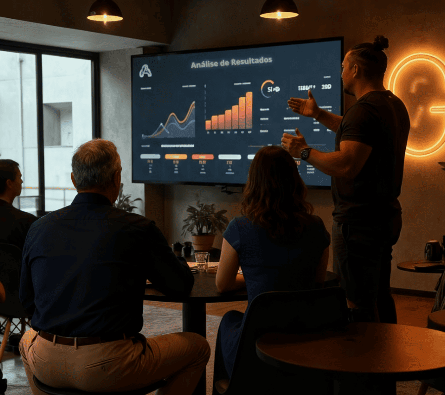É por isso que, no fim do dia, nossa metodologia é apenas o começo. O verdadeiro trabalho acontece quando nos sentamos ao seu lado como parceiros, usamos nossa expertise para analisar seus números e só descansamos quando seu negócio cresce. Não entregamos apenas cliques ou relatórios; entregamos um time de especialistas obcecados pelo seu sucesso.